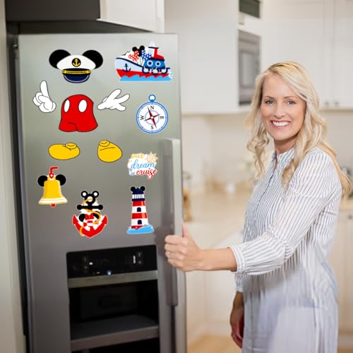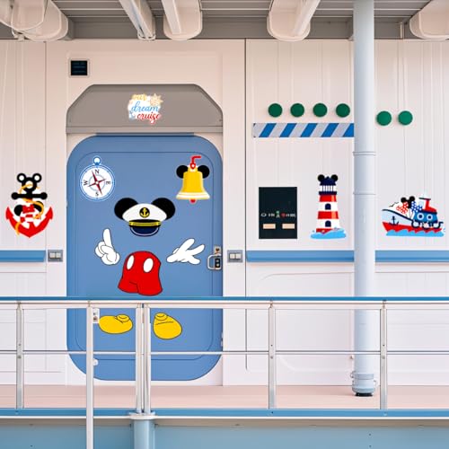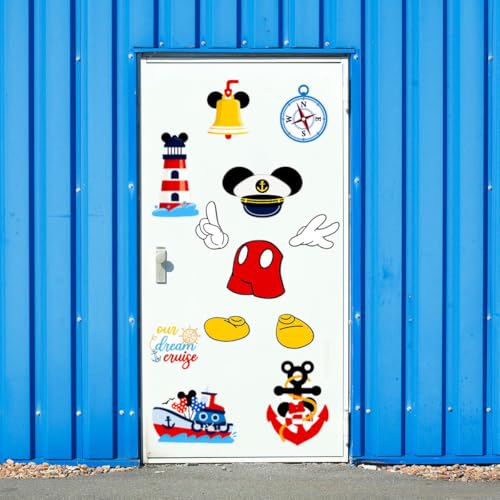 Enhance your cruise experience with the 12Pcs Captain Mouse Cruise Door Decorations. This delightful set features cartoon-style magnets, including mouse ears, gloves, pants, shoes, and steering wheels, perfect for adding a whimsical touch to your stateroom door.
