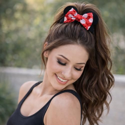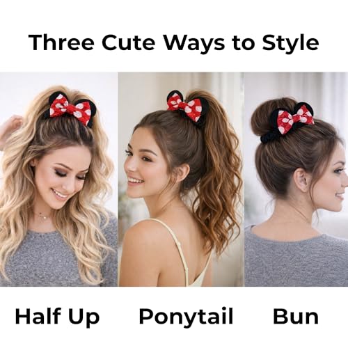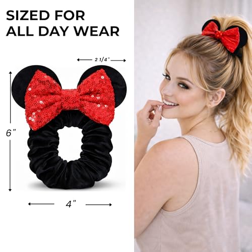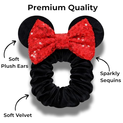 2 Pack Mouse Ear Scrunchies – Velvet Bow Hair Scrunchies with Sequin Ears – Cute Ponytail Holder Hair Accessories for Women by Styla Hair (Red Black)