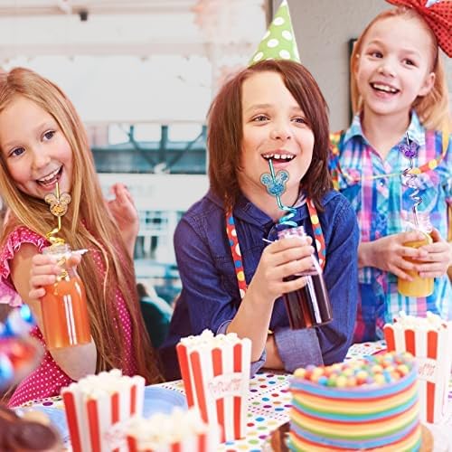 Birthday Party Supplies: Value Package List includes24pcs themed plastic straws with 24 cute glitter mouse ear characters + 2 cleaning brushes, Great for birthday or baby showers as party favors in the goodie bags. Kids of all ages love them, especially aged 3 to 10 years old. unique glitter mouse ear straws, a big hit for kids in birthday parties, princess parties, theme parties, and baby showers.