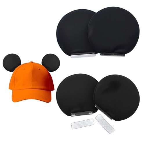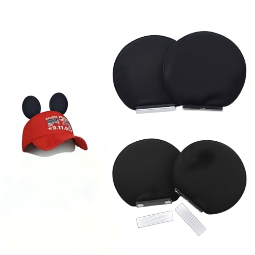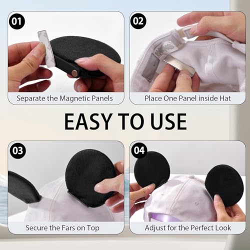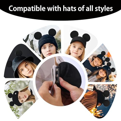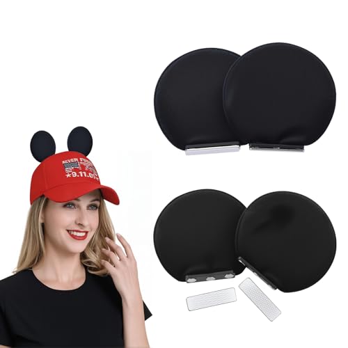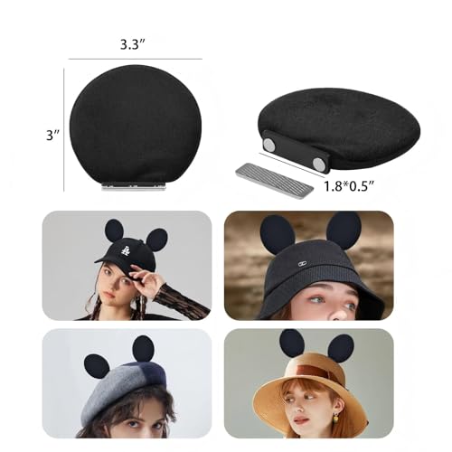 4 Pcs Magnetic Mouse Ears for Hats, Removable Magnet Minni Ear for Cap, Interchangeable Mouse Ears for Baseball Hat, Clip-On Hat Accessory, Adults and Kids, for Theme Parks Halloween Christmas Black
