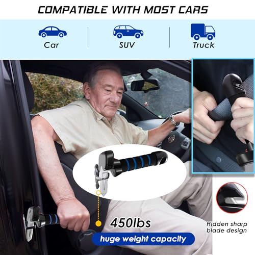 4 in 1Car Door Assist Handle: car support handles, window breaker, seatbelt cutter,led flashlight(need extra battery) .Car cane door handle is designed to assist you in getting out of the car with ease, especially if your legs are numb when you drive long-term . It provides good support points and allows you to pull yourself out of the car effortlessly.