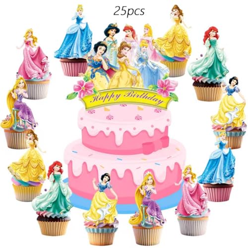 ✨【Package Includes】This Disney Princess party supplies set includes 1 Happy Birthday banner, 1 tablecloth, 1 cake topper, 1 backdrop, 6 hanging swirls, 24 cupcake toppers, 2 aluminum balloons, and 16 latex balloons. It has everything you need to host a Princess themed birthday party.