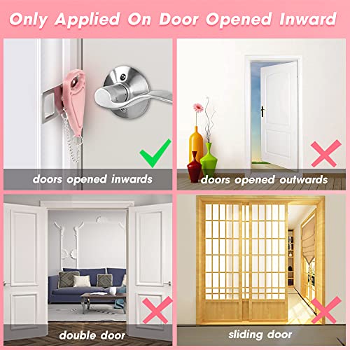 Security and Privacy – This pink portable door lock provides you with extra security and privacy, safety locks for doors greatly improving your security and preventing unauthorized entry, so the door can’t be opened from the outside, door lock security, not even with a key; door security bar is a great helper for you when you are on business and travel, or live alone. It is also a personal safety device for women.