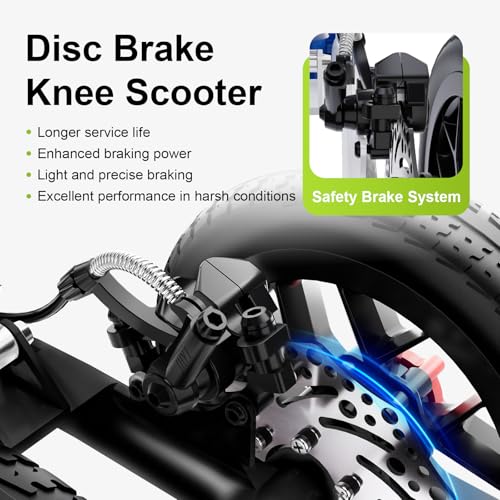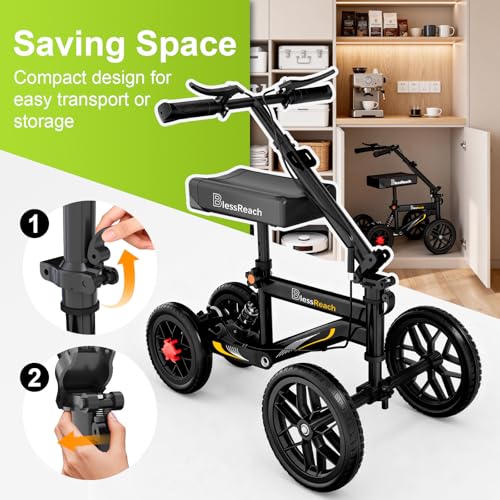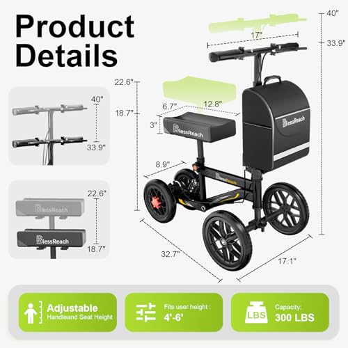 BlessReach Deluxe Medical Scooter Double Handbrake, All Terrain Steerable Knee Scooter Crutch Alternative, for Adults Injured Ankle & Foot Recovery in Blacks