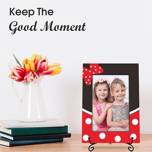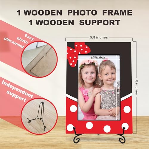 Bow-knot & Spot Wooden Picture Frame With A Stand, 4×6 Cartoon Theme Vertical Photo Frame For Girls, Birthday Gifts, Home Decorations & Gifts-XK-A10
