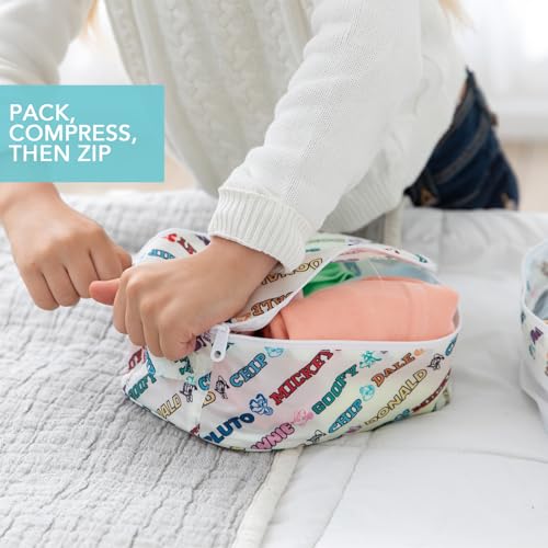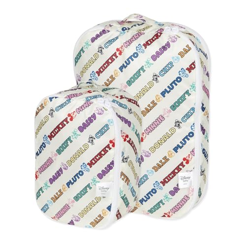 Bumkins Disney Packing Cubes for Travel, Organize Luggage with Compression Bags, Essential Traveling Accessories, Carry On Suitcase for Clothes or Toiletries, Set of 2 Sizes, Mickey and Friends White