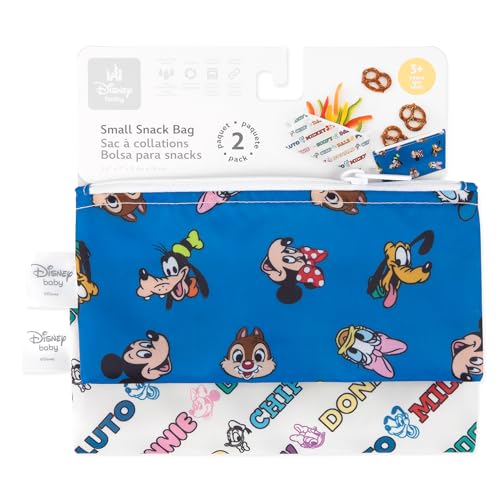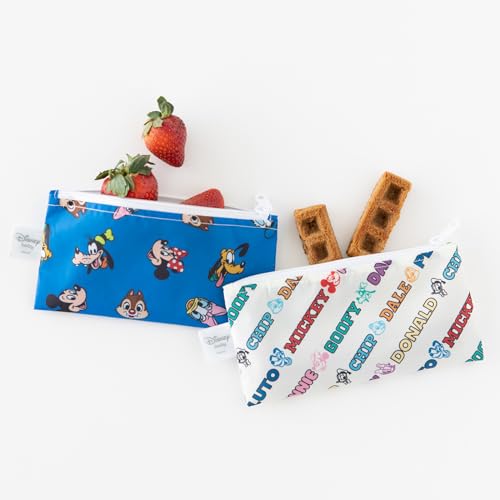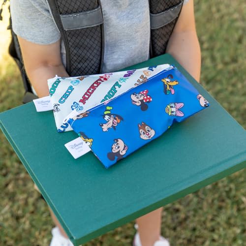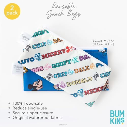 Bumkins Disney Reusable Snack Bags, for Kids School Lunch and for Adults Portion, Washable Fabric, Waterproof Cloth Zip Bag, Supplies Travel Pouch, Food-Safe Storage, 2-pk Mickey and Friends