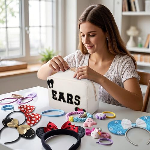 Dealkion Headband Holder Organizer Headband Storage Mouse Ear Holder Bag Hair Accessories Organizer Chenille Letter Makeup Bag Park Travel Essentials Gifts for Women