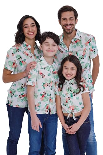 Get ready for a fun family outing with the Disney Mickey Mouse and Minnie Mouse Hawaiian Matching Family Button Down Shirt. This shirt features a vibrant all-over print of tropical leaves and flowers, complemented by beloved Mickey and Minnie Mouse artwork. Made from soft and comfortable fabric, it’s perfect for vacations, family photos, or casual everyday wear. Available in sizes for the whole family, including adults, kids, and babies, this shirt allows everyone to join in on the Disney magic.