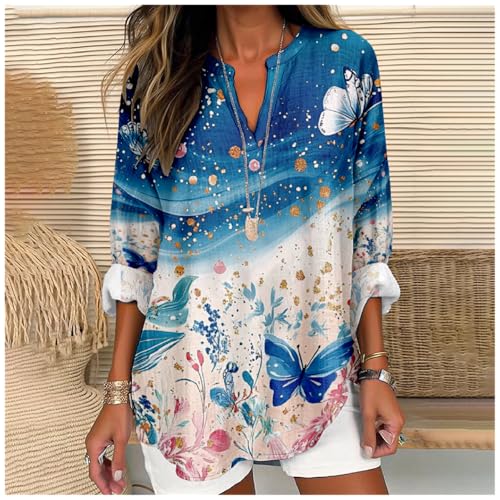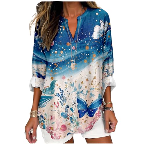 domirica Floral Tops for Women V Neck Long Sleeve Plus Size 2025 Spring Cute Casual Elegant Resort Flowy Ladies Tee Shirts
