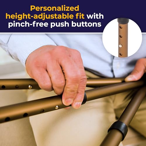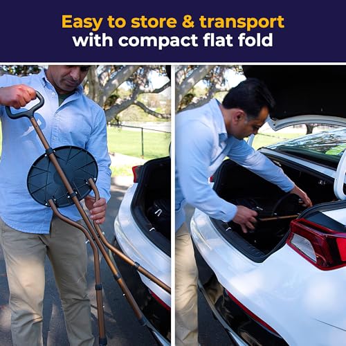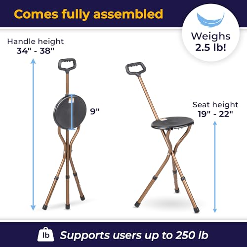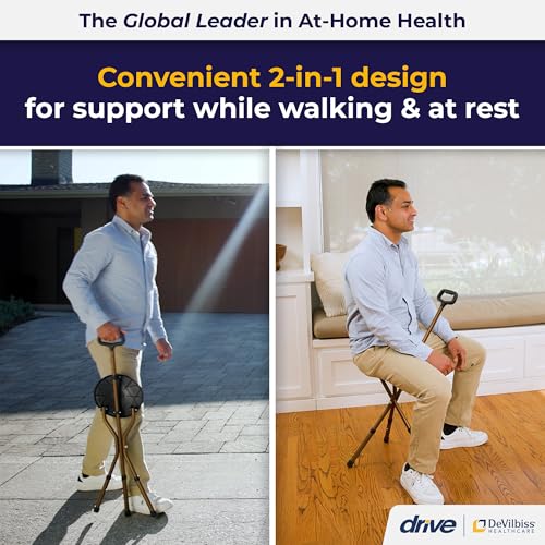 The Drive Medical Adjustable Lightweight Folding Cane with Seat is designed for those who need support while walking and a convenient place to rest. Made from strong aluminum, this cane is not only lightweight at just 3.2 pounds but also sturdy enough to support up to 250 pounds. Its tripod design features vinyl contoured tipped legs for added stability. This cane is perfect for various situations, whether you’re waiting in line, enjoying outdoor events, or simply taking a stroll.