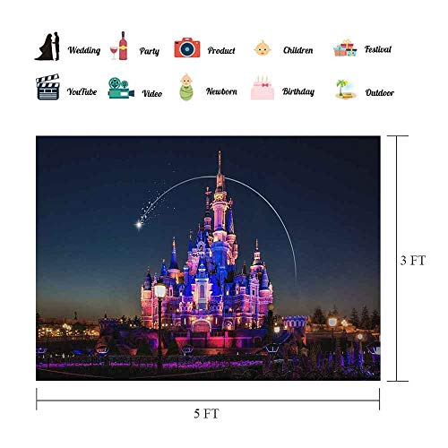 EOA 5(W) x3(H) FT Disneyland Castle Backdrop for Birthday Party Supplies Disney Night Park Photography Background Baby Shower Children Portrait Cake Table Photo Booth Props