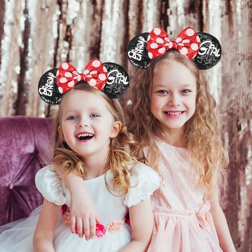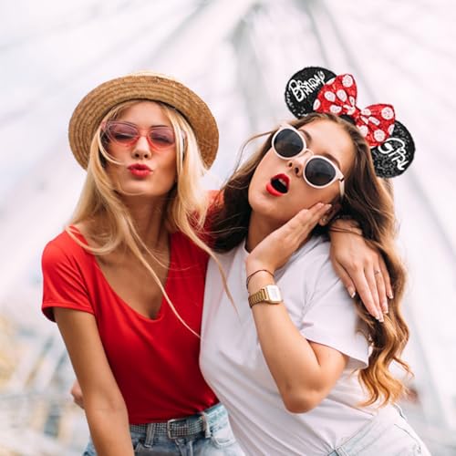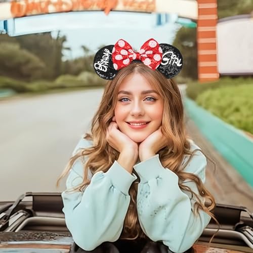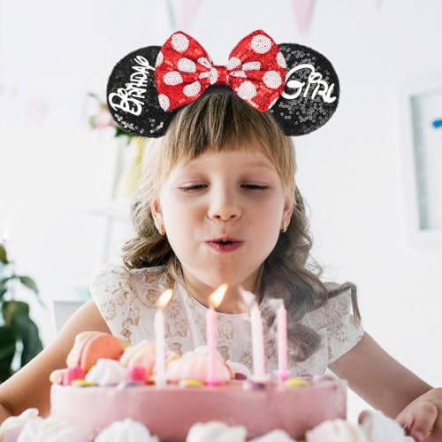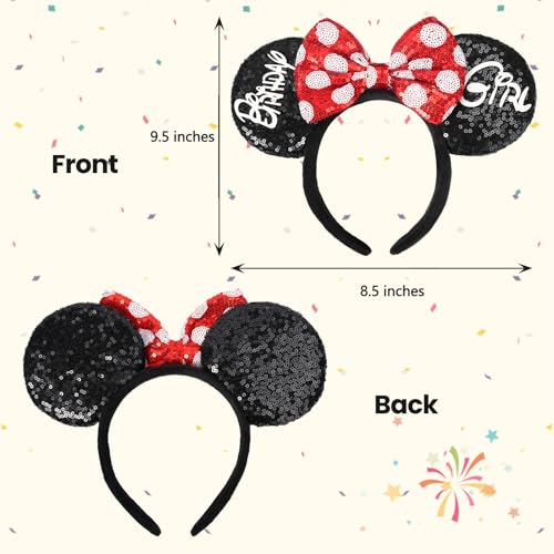 ETLUK Mouse Ears Headband, Mouse Ears Sequin Bow Headbands for Women Girls, Birthday Party Decorations (Birthday Girl)