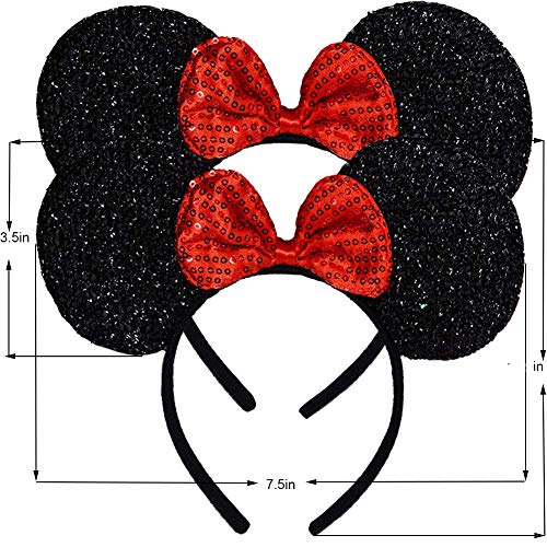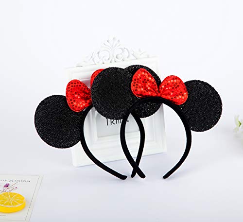FANYITY Mouse Ears Headbands Sequin Hair Band for Girls Women Boys Party, 2 Pieces (RED)