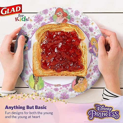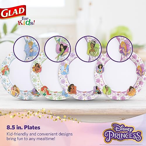 Glad Disney Princess Kids Paper Plates, Heavy Duty Soak Proof and Microwavable, Cut Resistant Disposable Snack Plates for Everyday Meals, School Lunches and Birthday Parties, 8.5 Inch, 40 Count