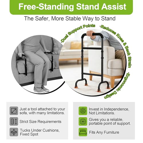 Lift Naturally & Effortlessly: The upper and lower ergonomic handrails allow you to grip naturally and rise smoothly. Simply place both hands on the couch cane assist handles, lean forward, and press straight down. This proper motion reduces strain on your knees, hips, and back, turning a daily struggle into an easy transition