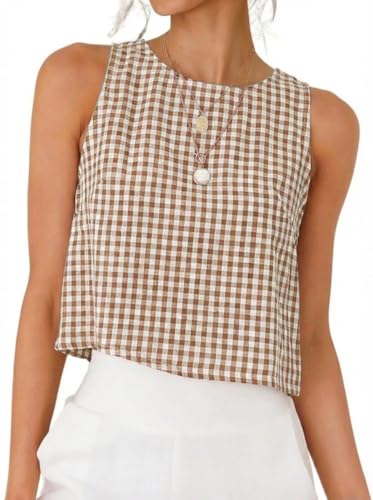 IDEALSANXUN Womens Gingham Crop Tank Tops 2026 Spring Summer Sleeveless Vest Top