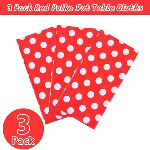 Kesfey 3 Pack Red Polka Dot Table Cloths 54 x 108 Inch Mickey Minnie Mouse Tablecloth Disposable Plastic Red Waterproof Rectangle Picnic Table Covers Christmas Carnival Tablecloths for Birthday Party