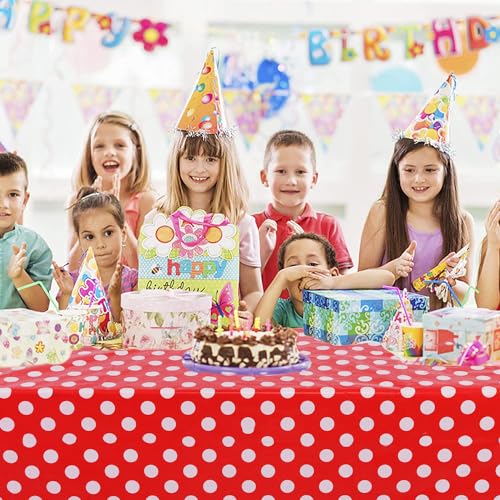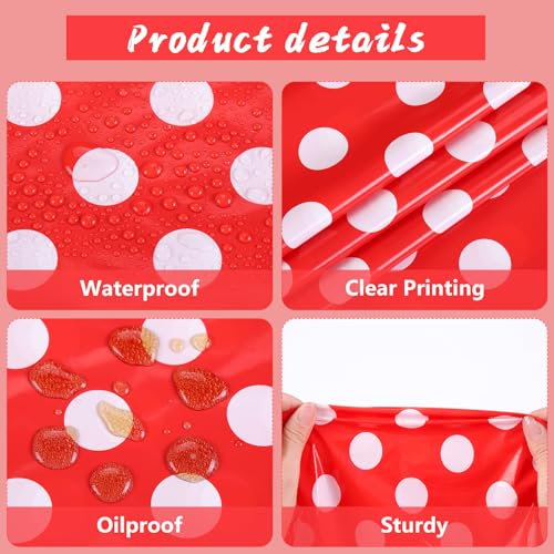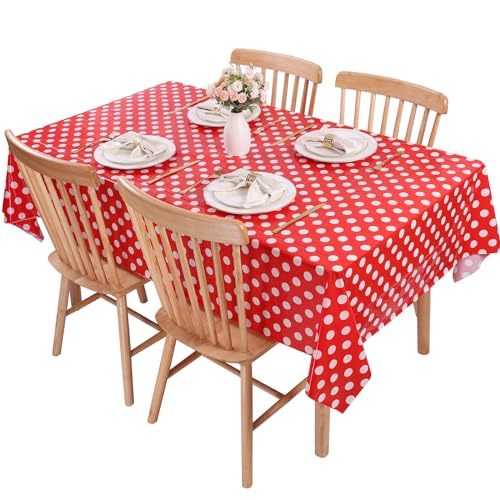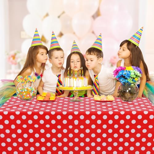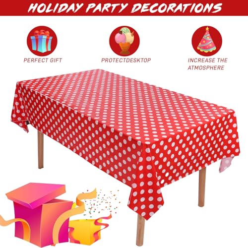 The Kesfey 3 Pack Red Polka Dot Table Cloths are perfect for adding a festive touch to your events. Measuring 54 x 108 inches, these table covers are designed to fit standard rectangular tables, making them ideal for various occasions. Made from high-quality PE plastic, they are waterproof and durable, ensuring they can withstand spills and messes during your celebrations.