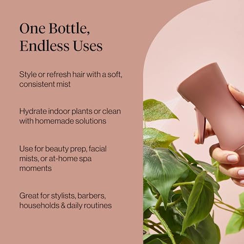 MULTI-USE MISTER FOR HAIR, CLEANING & MORE: More than a hair spray bottle, this versatile mister spray bottle works for plants, facial toners, and light household use. Use it as one of your go-to spray bottles for cleaning or as a water spray bottle for hair and beauty routines. Refillable and easy to maintain.