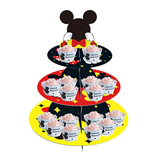 Large 3-Tier Mickey Minnie Cupcake Stand 12Inch Cardboard Cupcake Tray for Wedding Birthday Baby Shower Mickey Minnie Birthday Party Supplies