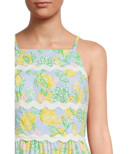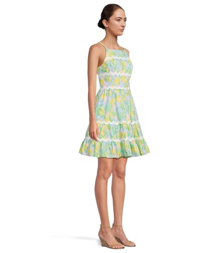 Step into elegance with the Lilly Pulitzer Women's Angelynn Dress, crafted from 100% cotton for comfort and style. This fit-and-flare dress features an allover floral print, perfect for various occasions like garden parties and brunches. The chic apron neckline and sleek shoulder straps provide a comfortable fit, while the bodice cups offer subtle support. The tiered skirt falls gracefully above the knees, allowing for freedom of movement. Practical side seam pockets add functionality, making it easy to carry small essentials. The half-zipper closure ensures ease of wear, ideal for busy lifestyles.