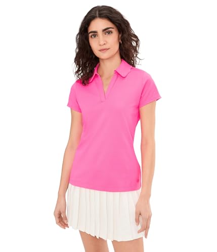 Step into sunny-day style with the Lilly Pulitzer Women's Frida Scallop Polo UPF 50. This short sleeve athletic golf shirt features a polished look, perfect for outdoor activities. The UPF 50 construction provides dependable sun protection, making it ideal for a morning tee time or an afternoon walk. The structured collar and button placket maintain a classic polo profile, while the scalloped trim adds a refined touch. It's designed for movement, ensuring comfort whether you're at the driving range or enjoying casual outings.