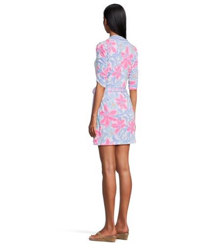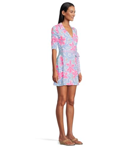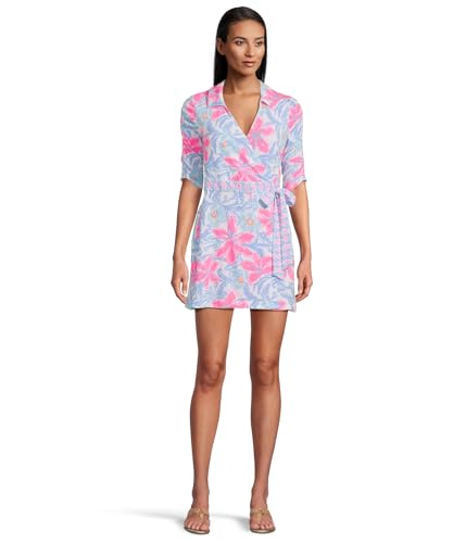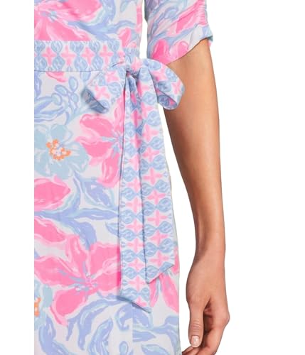 The Lilly Pulitzer Women's Ibby Skirted Rompers is a stylish choice for those seeking comfort and elegance. This romper features a sleeved design with elbow-length ruched sleeves, providing a flattering silhouette. The surplice neckline adds a touch of sophistication, while the self-tie detail allows for a customizable fit. With a length of 17 inches from the natural waist and a 3-inch inseam, it is perfect for various occasions.