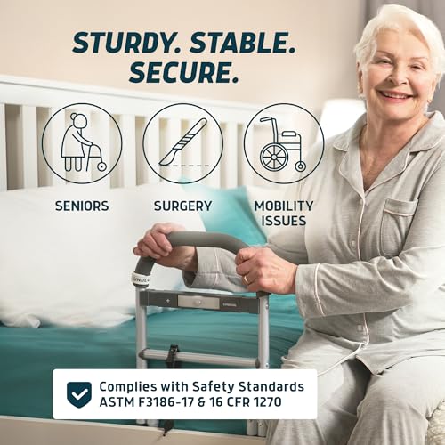 The Lunderg Bed Assist Rail helps seniors prevent roll-offs and provides a non-slip grip handle to assist in sitting up and standing without help, reducing fall risk and promoting independence.