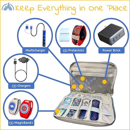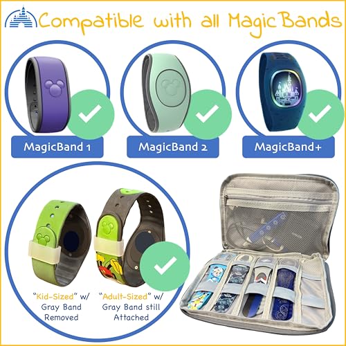 SMALL, LIGHTWEIGHT, AND GUARANTEED TO WORK WITH ALL MAGICBAND +: Compatible with MagicBand 1, MagicBand 2, and MagicBand +. Store up to 5 MagicBands per case. Also stores all your MagicBand Accessories (Multicharger, Protectors, Power Bricks, Chargers, etc.). Portable so you can carry it on all your adventures in the Disney Parks and Disney Cruises.