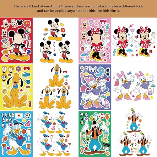 Make-a-face Stickers Sheets Make Your Own Stickers,Mixed & Matched with 6 Designed Characters(4 of Each) for Party Favors Supplies, Reward, Decor,Gift Idea