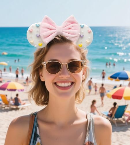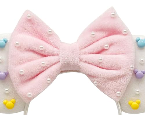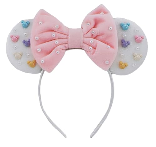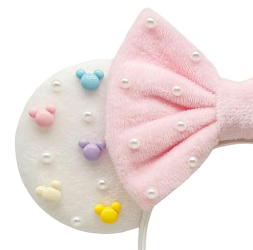 Mouse Ears Headbands With Cute Mouse Heads and Exquisite Pearls Decoration, Soft Flannel Ears & Bow, for Costume Cosplay Party; TGBF