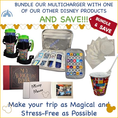 The MultiCharger for MagicBand+ is an essential accessory for your Disney trip. It features compatibility with both USB-A and USB-C plugs, allowing you to charge your devices conveniently. This bundle includes four MagicBand Protectors designed for both kid-size and adult-size MagicBands, ensuring protection and ease of use. The compact design makes it easy to carry in any bag, so you won't feel weighed down during your adventures. With limited outlets in hotel rooms, this charger helps you keep all your devices powered up without hassle.