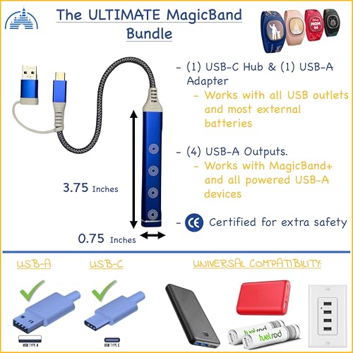 MultiCharger for MagicBand+, MagicBand +, Magic Band Compatible with FuelRod & Other External Battery. Disneyland Accessories for Trip to Disney World Cruise (USB-A & USB-C, 1-Pack)
