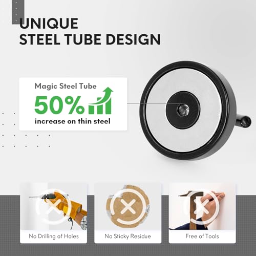 ✔MAGIC STEEL TUBE DESIGN – Unique design of steel tube inside the base of magnetic hooks greatly increases the attractive force , especially on thin steel! It increase approximately 50% force comparing those none-tube magnets. it solves the problem of weak force on thin steel. Permanent magnetic hook with magic steel tube, strong magnetism lasts forever!