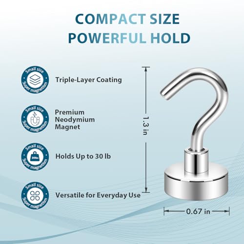 The Neosmuk Magnetic Hooks deliver up to 30lb holding power.