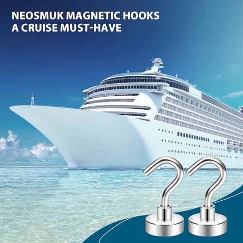 Super Strong Magnetic Hooks – Cruise Ready Neosmuk magnetic hooks deliver up to 30lb holding power, perfect for cruise cabins, ship walls, or refrigerator doors. These heavy duty magnet hooks keep your items secure while saving space on trips.
