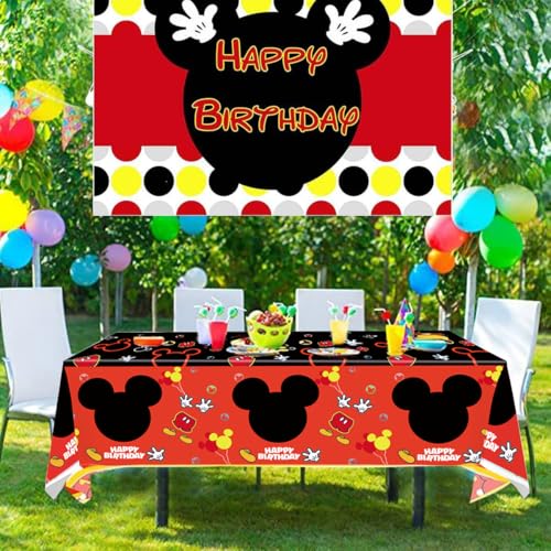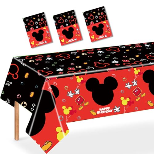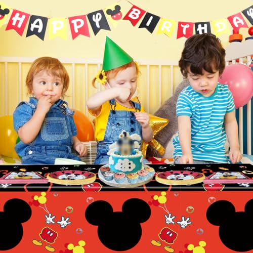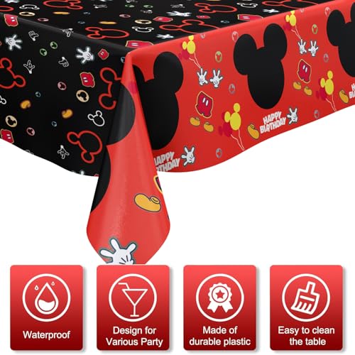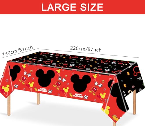 Nyhpar 3PCS Mouse Party Tablecloth, Black Red Plastic Tablecover Disposable Table Cloths Decor for Boys 1st 2nd 3rd Party Decorations Supplies, 86.6 x 51.2in