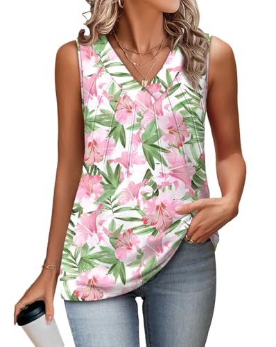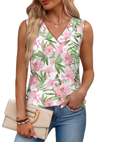 OFEEFAN Tank Tops for Women Loose Fit Sleeveless Shirts V Neck Summer Clothes Ruched Women’s Tees and Tanks Straight Hem