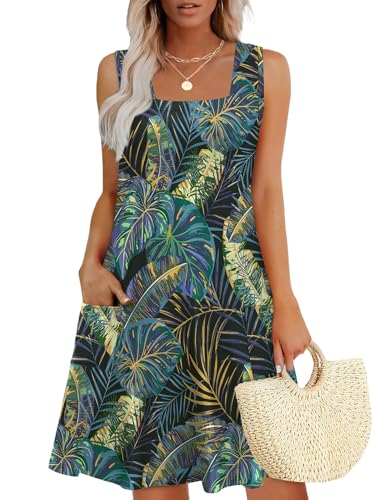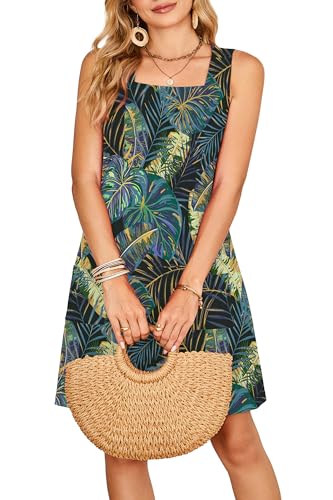The OFEEFAN Womens Square Neck Tank Dress is designed for comfort and style, making it a great addition to your summer and spring wardrobe. This loose swing sundress features a square neckline and is available in both plain and print options. With pockets included, it combines practicality with fashion, perfect for casual outings or vacation wear.