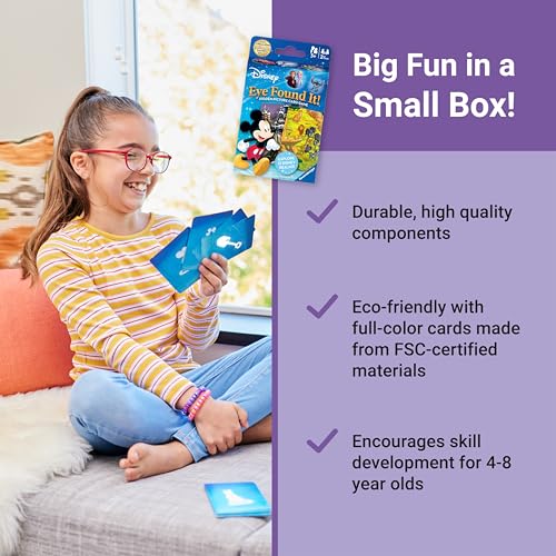 Kids boost observation and attention skills with Eye Found It! card game. Fun and educational, it mixes Disney magic with learning, keeping children excited, focused, and entertained as they race to spot characters.