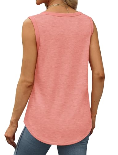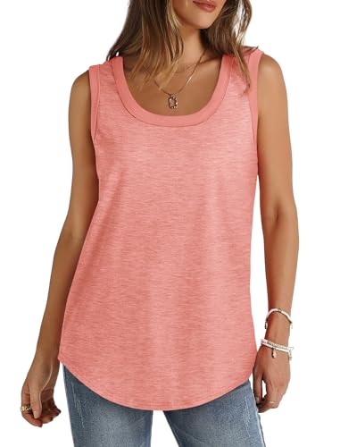 Saloogoe Womens Tank Tops Summer Loose Sleeveless Tops Ribbed Trim Scoop Neck Curved Hem Fashion Clothing