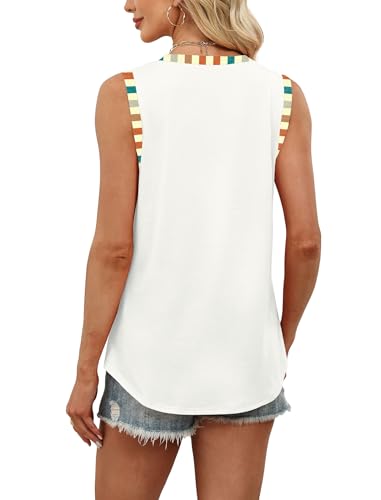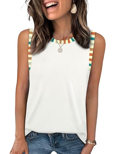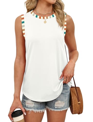 Sampeel Tank Tops for Women Round Neck Boho Color Block Sleeveless Tops Summer Beach Vacation Clothes Curved Hem