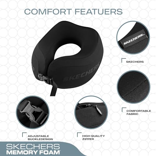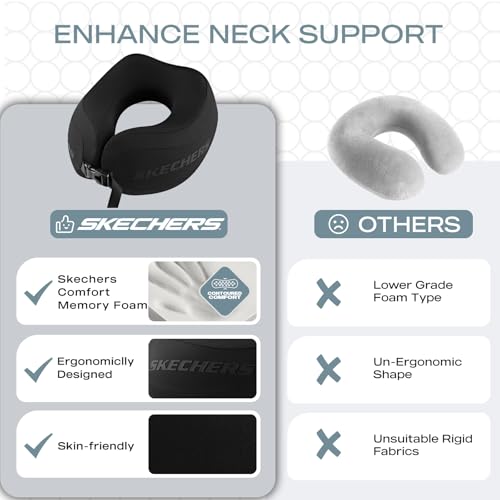 Skechers Neck Pillow for Traveling,Memory Foam Travel Neck Pillow for Airplane Travel Pillow for Flight Headrest Sleep, Portable Plane Accessories,Black