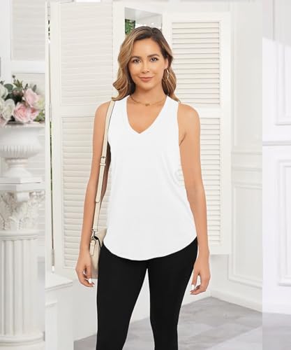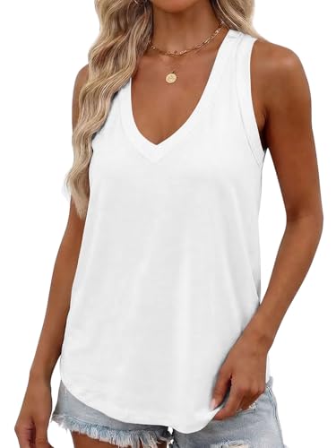 Smile Fish Women Summer Deep V Neck Tank Top Loose Fit Flowy Sleeveless Shirt