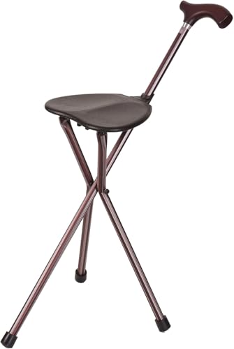 The Switch Sticks Folding Walking Cane with Seat is designed for seniors and adults who need support while walking. This versatile cane features a lightweight aluminum frame, making it easy to carry at just 3 pounds. It folds conveniently for travel, whether by plane or car. The 34-inch height is suitable for individuals between 5 and 5 feet 10 inches tall.