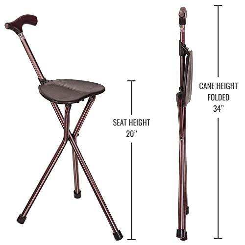 Switch Sticks Folding Walking Cane With Seat For Seniors & Adults, 34” Tall Quad Cane Chair, Lightweight Aluminum Frame – Supports 220 Lbs, Ergonomic Non-Slip Handle – Travel & Outdoor – FSA/HSA