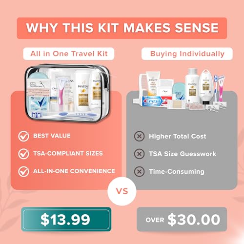 TrekTote 15 Piece Set Women’s Travel & Hygiene Kit with Clear Toiletry Bag, Personal Care Essentials, Single Kit or Bulk Case Packs