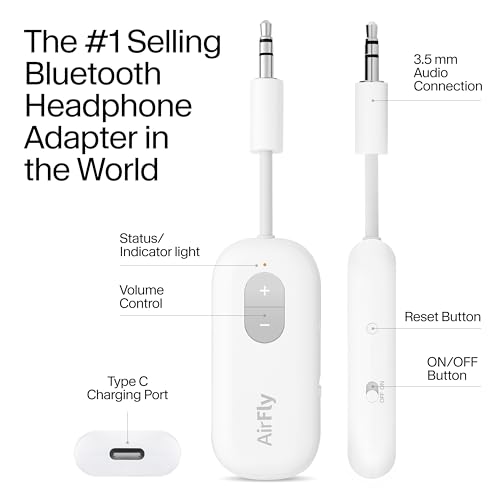 Wireless Freedom – Say goodbye to tangled cords with the Twelve South AirFly. Listen to audio from in-flight entertainment, gym equipment, gaming devices, or any 3.5mm audio jack to your AirPods, earbuds, or wireless headphones.