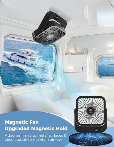 UHUZZ Cruise Ship Approved Magnetic Fan – Rechargeable & Plug-In, 5-Speed Adjustable, Quiet Operation, 5-12 Hour Battery Life, Must-Have for 2025 & 2026 Cruises